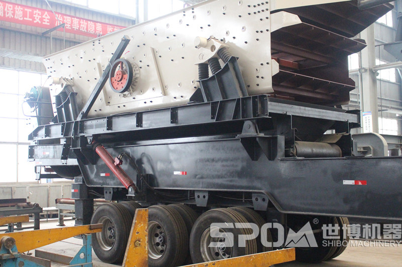 移动式振动筛有必要单独介绍一下,移动振动筛由移动车架和振动筛组成,没有破碎机,主要功能就是筛分砂石料,可移动,有轮胎式移动振动筛和履带式移动振动筛两种,一般搭配移动碎石机和移动制砂机使用。